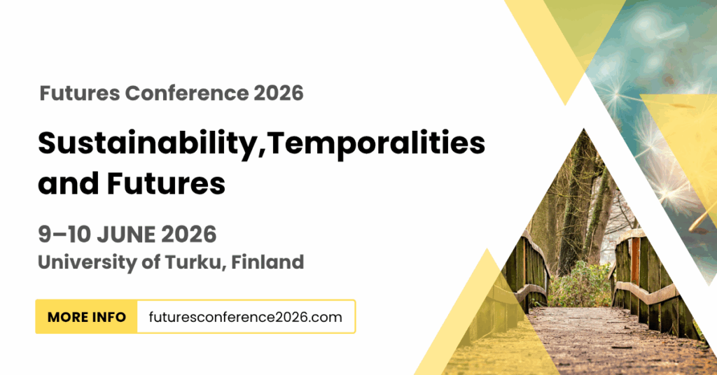 Futures Conference 2026 will be organised on a theme ‘Sustainability, Temporalities and Futures‘ on 9–10 June 2026 in University of Turku, Turku, Finland. The event focuses on the critical theme of the sustainability transformation. This fundamental shift will renew societal and economic systems and practices, while also enhances human agency, well-being and quality of life.